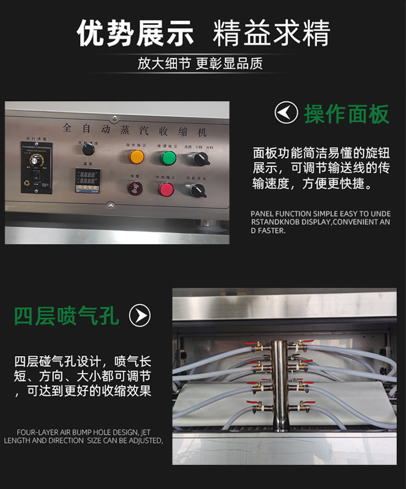 - 環保節能:在適當的操作條件下,蒸汽收縮機相對比較節能。而且蒸汽本身是一種相對清潔的熱媒,與一些化學溶劑型的包裝方式相比,對環境的污染較小。