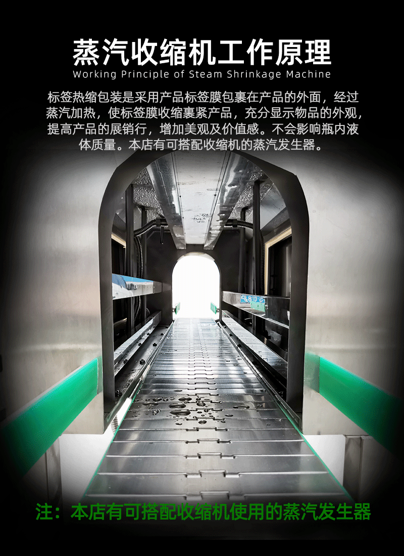 • 收縮通道清潔:收縮通道內的蒸汽噴頭和通風口需要定期清理。蒸汽噴頭堵塞會影響蒸汽的均勻分布,導致收縮效果不佳。可以使用軟毛刷或壓縮空氣來清理噴頭,去除可能堵塞噴頭的雜質。通風口堵塞會影響空氣流通,不利于包裝材料的冷卻定型,因此也要定期檢查和清理通風口。