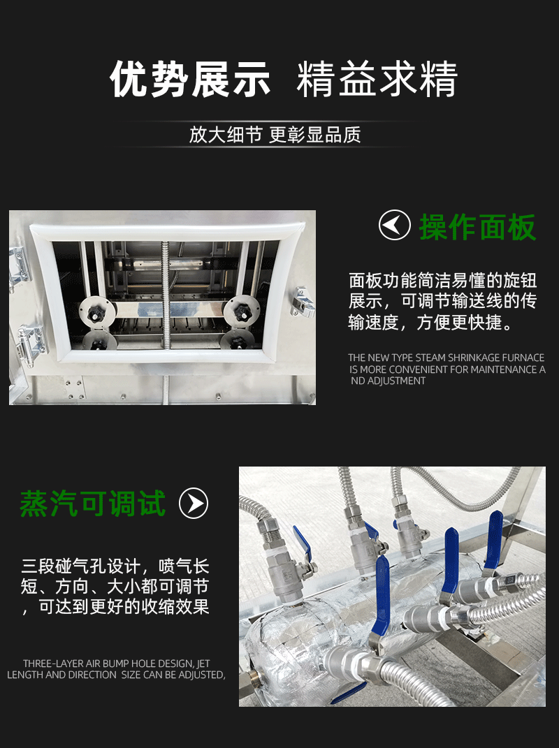 • 外觀檢查:在開機前和關機后,都應該對蒸汽收縮機進行簡單的外觀檢查。查看機器的外殼是否有損壞、變形或松動的部件,特別是連接部位的螺絲和螺母是否緊固。如果發現外殼有裂縫,可能會影響機器的安全性,需要及時修復或更換。