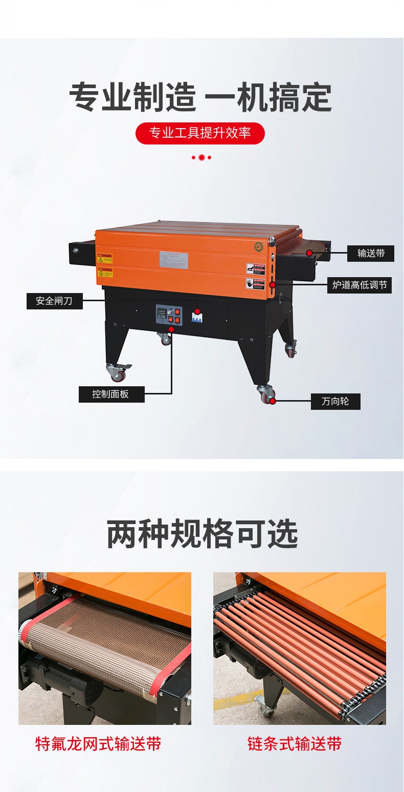 • 輸送速度可調(diào):輸送速度可以根據(jù)包裝需求靈活調(diào)整。可以根據(jù)產(chǎn)品的大小、形狀復(fù)雜程度以及生產(chǎn)效率的要求來設(shè)置合適的輸送速度。比如,在包裝簡(jiǎn)單的小型產(chǎn)品時(shí),可以提高輸送速度,以提高包裝效率;而在包裝大型或形狀不規(guī)則的產(chǎn)品時(shí),適當(dāng)降低輸送速度,確保熱空氣有足夠的時(shí)間使薄膜充分收縮,從而保證包裝質(zhì)量。