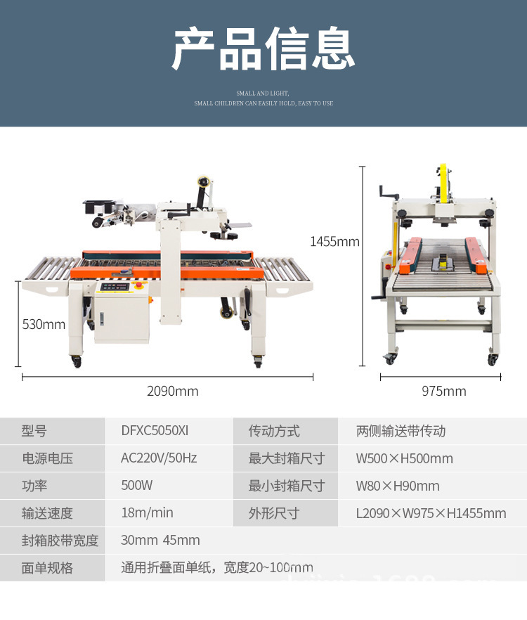 • 優質封箱效果:對于封箱而言,能夠確保膠帶粘貼得平整、緊密。它通過控制膠帶的張力和粘貼的壓力,使膠帶均勻地貼合在紙箱封口處,避免出現膠帶褶皺、粘貼不牢等情況。像在運輸過程中,如果封箱不牢固,紙箱可能會散開,導致產品受損,而一體機良好的封箱效果可以有效防止這種情況發生。
