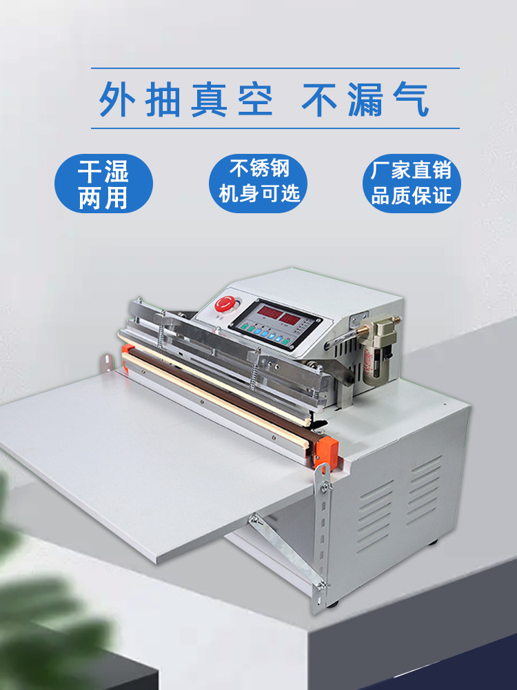 • 密封性能:外抽真空包裝機的整體密封性能對真空度至關(guān)重要。如果機器的抽氣室、包裝袋封口處等部位存在密封不嚴(yán)的情況,外界空氣會不斷進入,導(dǎo)致抽氣速度變慢,難以達到設(shè)定的真空度。