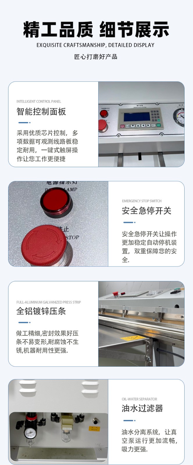 - 功能匹配:根據(jù)核心需求選擇集成功能,例如食品行業(yè)優(yōu)先選 “真空 + 充氣 + 印字” 款,工業(yè)領域可側(cè)重 “真空 + 寬邊封口” 款。