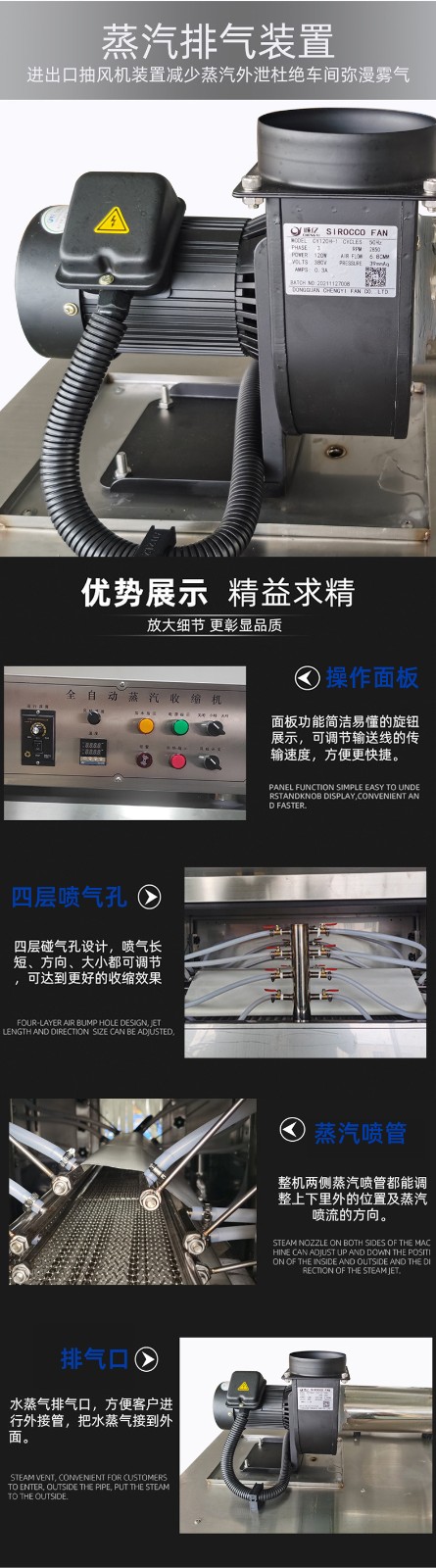 - 收縮室:產品在輸送系統的帶動下進入收縮室,與蒸汽充分接觸,使包裝材料收縮。收縮室的設計需保證蒸汽均勻分布。