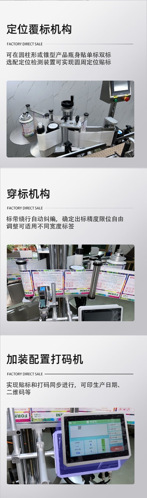 圓瓶類產(chǎn)品的貼標(biāo),可貼單標(biāo)和雙標(biāo),正背雙標(biāo)間距可靈活調(diào)整,部分機(jī)型還具備錐形瓶貼標(biāo)功能。精準(zhǔn)定位、高效智能、靈活兼容與合規(guī)耐用,可顯著提升產(chǎn)線自動(dòng)化與貼標(biāo)良率。