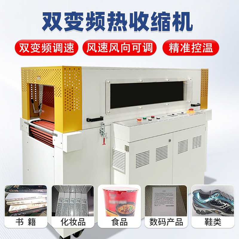 • 雙變頻熱收縮機:配備兩個獨立變頻器,分別控制輸送電機加熱 / 熱風電機,可實現(xiàn)無級調(diào)速、精準控溫。針對不同產(chǎn)品和膜材,能單獨調(diào)整輸送速度或加熱功率,無需聯(lián)動調(diào)試,適配性更強,尤其適合多品類小批量生產(chǎn)場景。