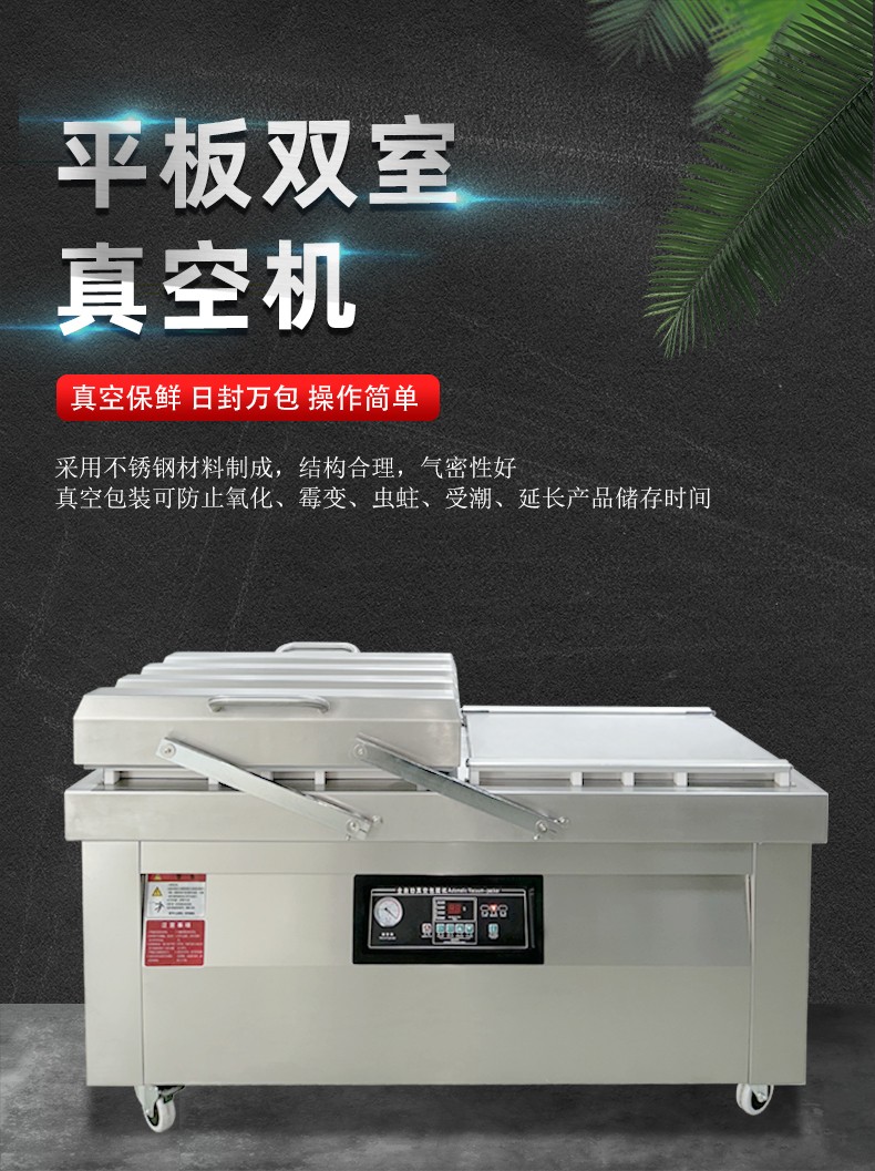 - 交替作業(yè),效率提升 50% 以上雙室機(jī)型的兩個(gè)真空室可實(shí)現(xiàn) “一工一備”:當(dāng)其中一個(gè)真空室正在進(jìn)行抽真空、熱封作業(yè)時(shí),操作人員可以在另一個(gè)真空室完成物料擺放、袋口整理的準(zhǔn)備工作。單室機(jī)型則必須等抽真空 - 熱封 - 開蓋取件整個(gè)流程結(jié)束后,才能進(jìn)行下一批物料的擺放,存在明顯的操作等待空窗期。同等規(guī)格下,雙室機(jī)的單位時(shí)間包裝量是單室機(jī)的 1.5-2 倍,尤其適合中小型加工廠的連續(xù)批量生產(chǎn)。