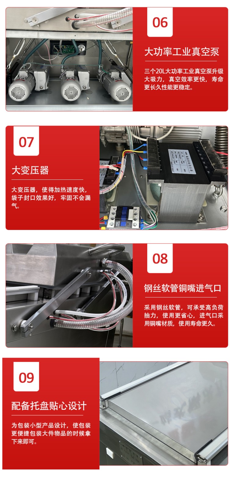 雙室平板真空包裝機(jī)對(duì)比單室真空包裝機(jī),核心優(yōu)勢(shì)集中在作業(yè)效率、生產(chǎn)連續(xù)性、人工利用率: