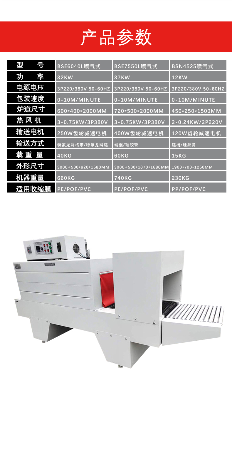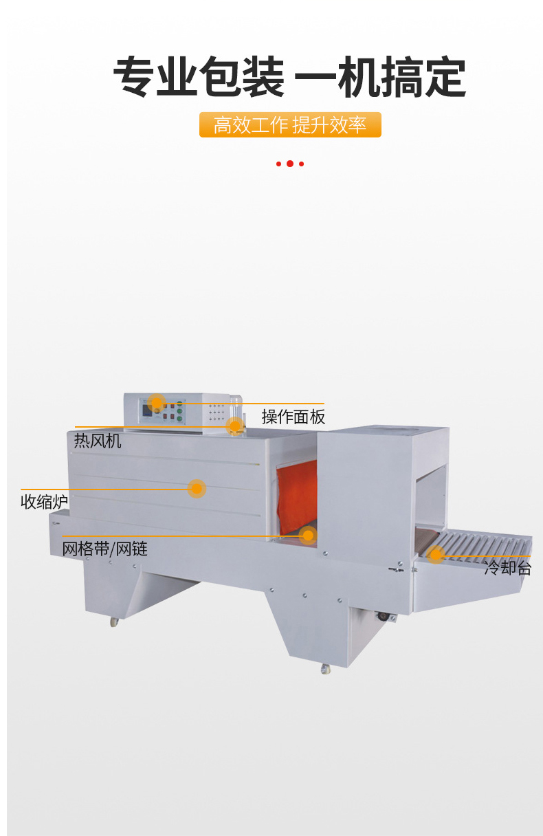 • 高效節能:通過合理的加熱系統設計和保溫隔熱措施,噴氣式熱收縮機在保證包裝效果的同時,能夠有效利用能源。與一些傳統的熱收縮包裝設備相比,它的加熱速度更快,熱量散失更少,從而降低了能源消耗和生產成本。
