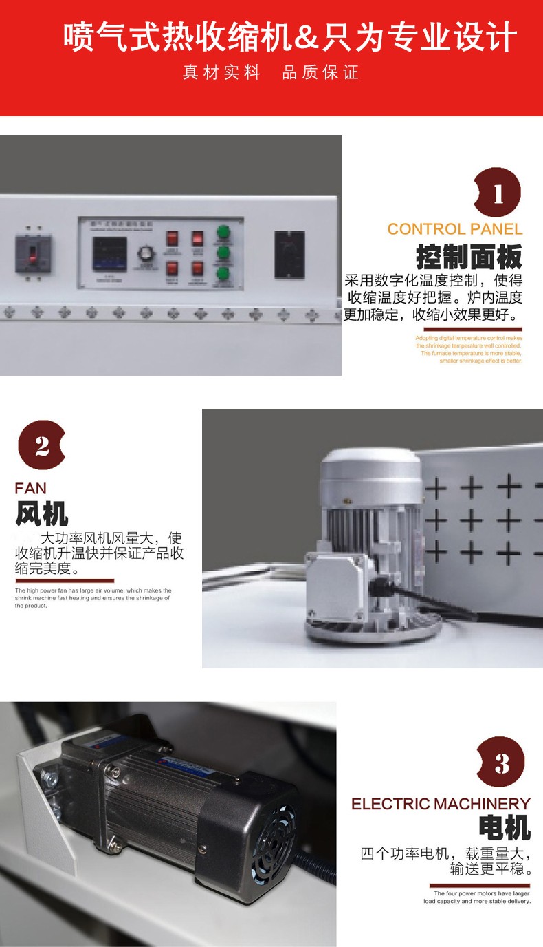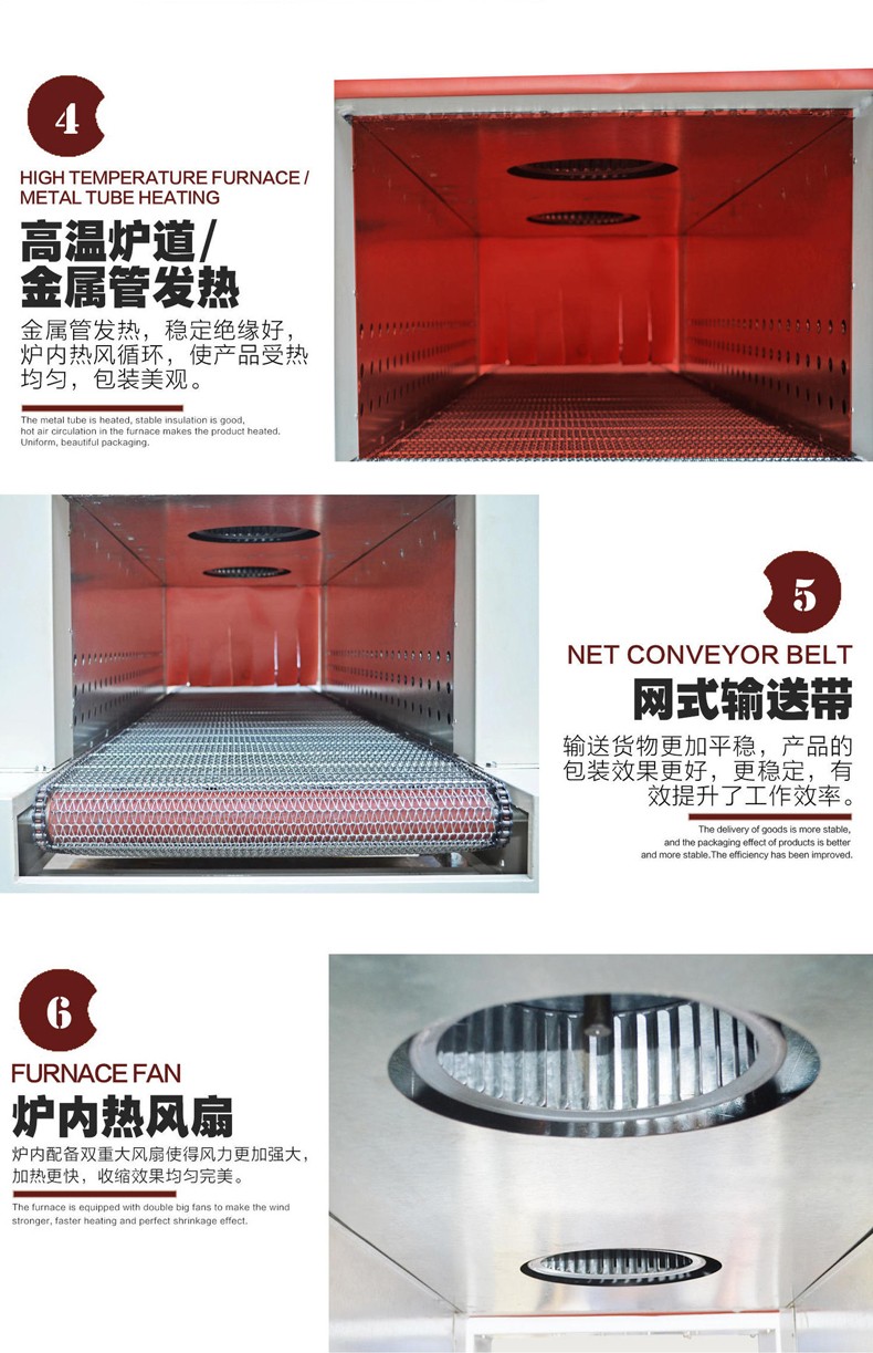 • 加熱系統:這是噴氣式熱收縮機的核心部分之一。它通常由加熱管、溫度控制器等組成。加熱管一般采用石英加熱管或不銹鋼加熱管,能夠快速產生大量的熱能。溫度控制器可以精確地調節和控制加熱溫度,以適應不同類型的熱收縮薄膜和產品的要求。例如,對于不同厚度的薄膜,需要設置不同的加熱溫度,一般溫度范圍在 100 - 300℃之間。
