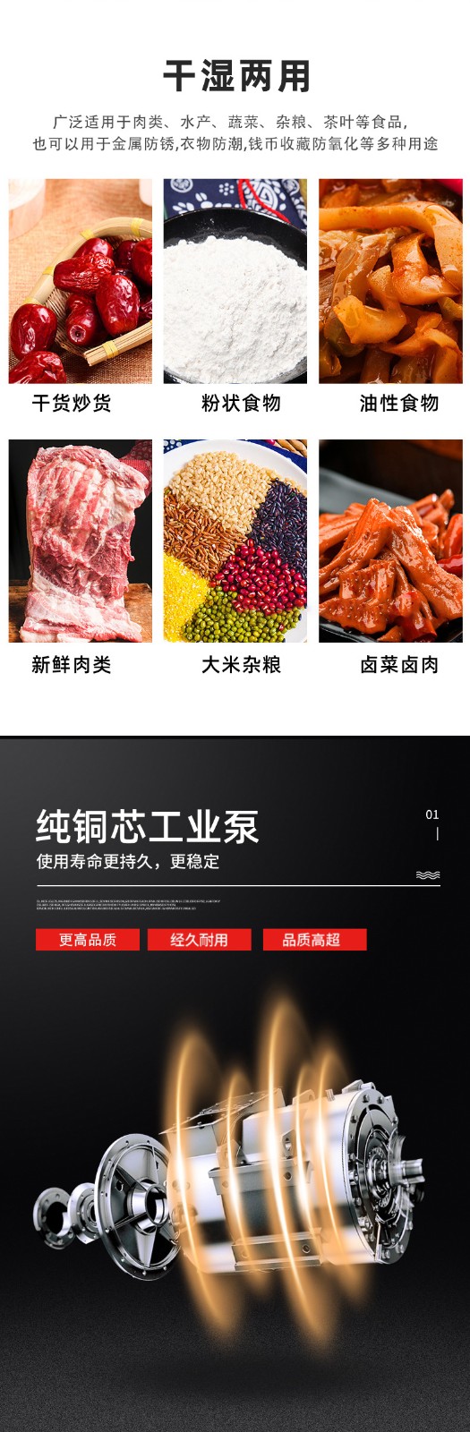 - 真空泵:是真空機的核心部件之一,用于抽取真空室內的空氣,形成真空環境。真空泵的抽氣速度和極限真空度直接影響真空包裝的效果和效率,常見的真空泵有旋片式真空泵、往復式真空泵等。