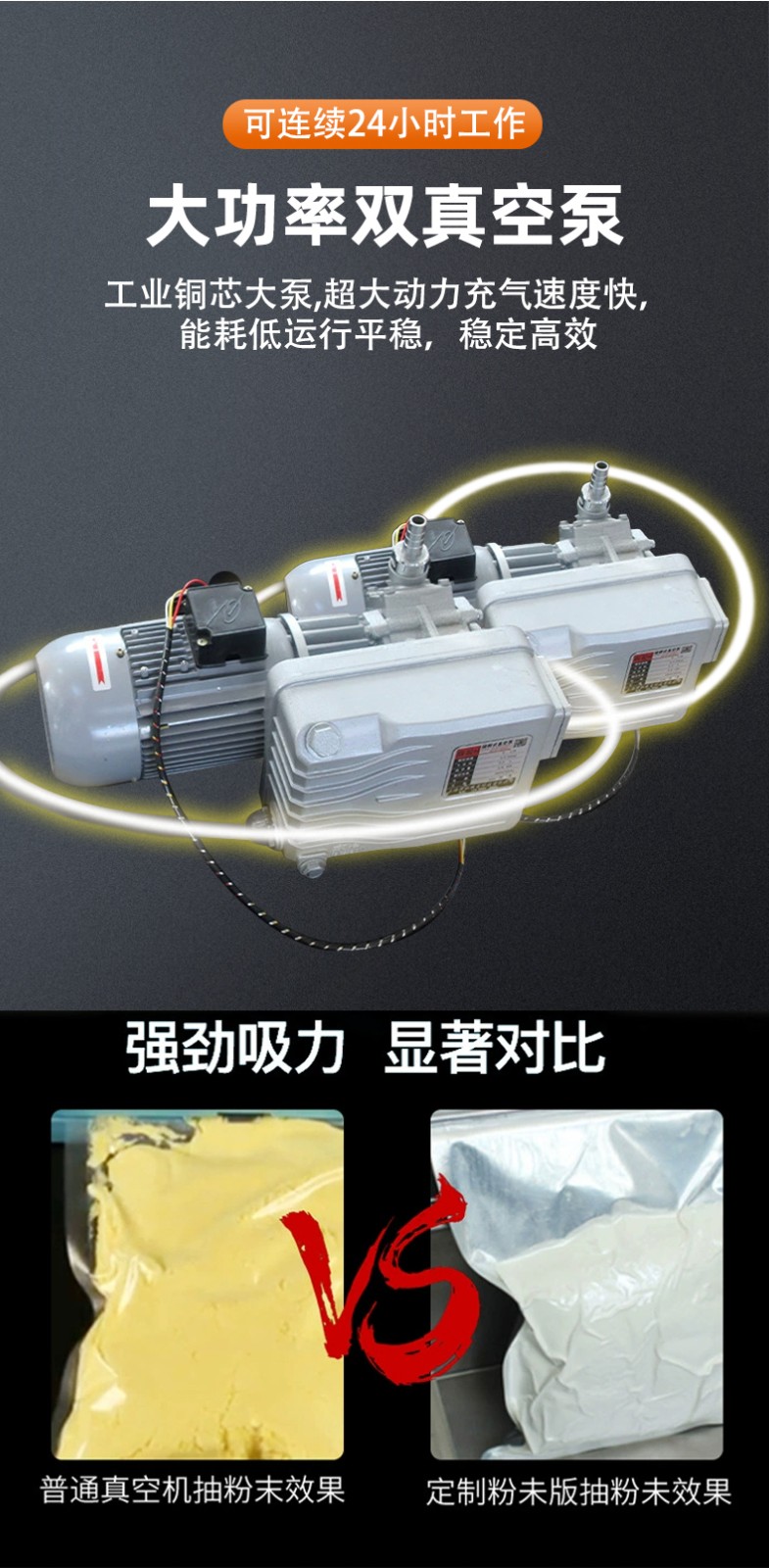 • 袋口立封形式:采用袋口立封的方式,可連同產(chǎn)品的外包裝,如桶、盒等,直接放置于真空室內(nèi),完成內(nèi)袋的真空封口,使包裝成品更加美觀59