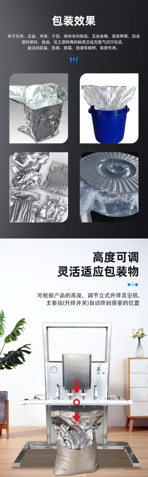 - 包裝效果好:能夠實現高效的抽真空和密封功能,使包裝內的物品處于真空狀態,有效防止物品受潮、受腐蝕氣體及鹽霧侵蝕,延長物品的保質期和使用壽命2。