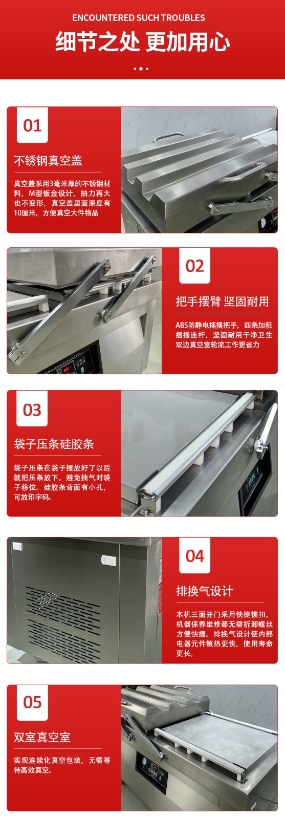 - 循環往復:左室、右室始終保持 “一室抽真空密封,一室裝袋準備” 的交替狀態,兩個真空室的作業周期無縫銜接,沒有任何空閑等待時間。
