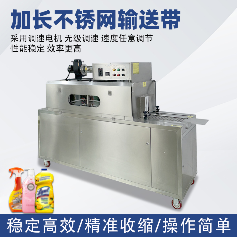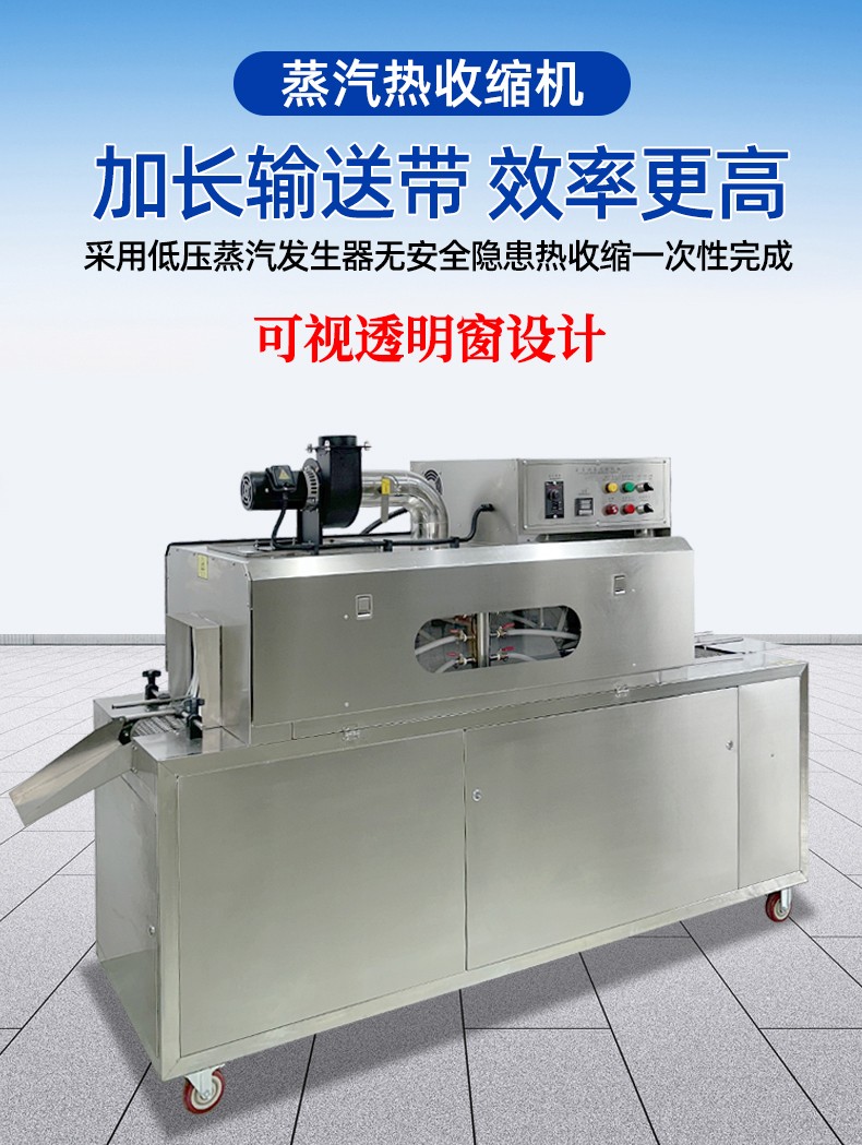 配備 PLC 智能控制系統,可精準調節蒸汽溫度(50℃-120℃可調)、輸送速度與蒸汽噴射量,兼容 POF、PVC、PE 等多種熱收縮膜材,滿足不同產品的包裝厚度與質感要求。