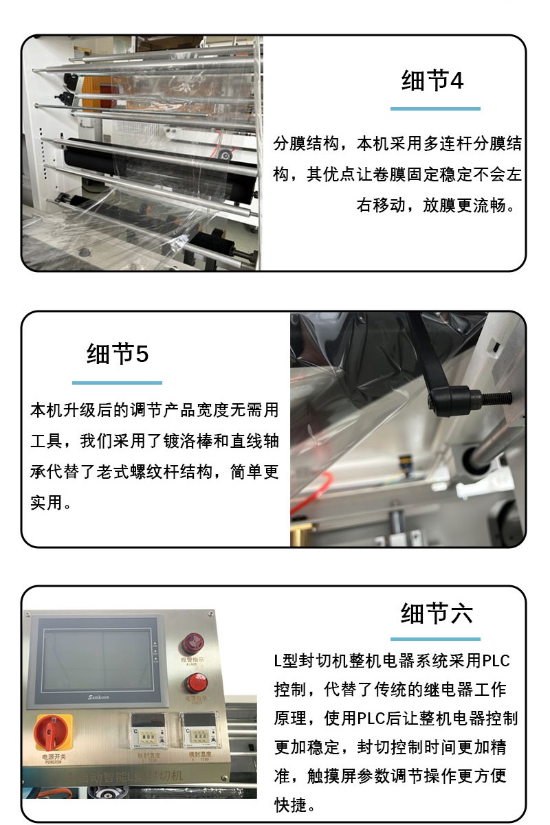 - 包裝質量好:L 型封切方式能夠使封口牢固、整齊,收縮后的薄膜緊密貼合產品,使包裝外觀美觀大方。這種高質量的包裝可以有效保護產品免受灰塵、濕氣等外界因素的影響,同時也提升了產品的整體形象,在銷售過程中更具吸引力。